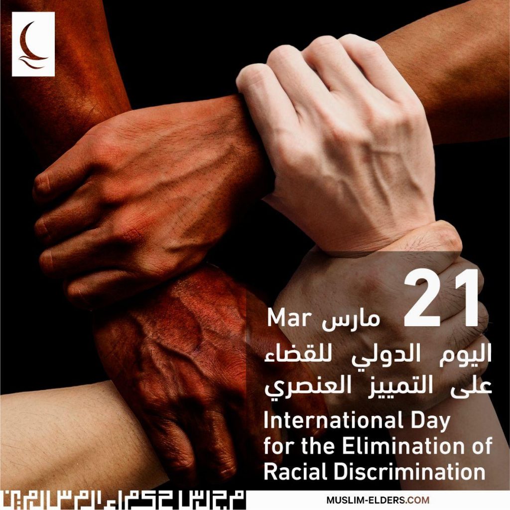 وقال مجلس حكماء المسلمين في بيان بمناسبة اليوم الدولي للقضاء على التمييز العنصري، الذي يوافق 21 مارس من كل عام، إن الإسلام نادى بالمساواة بين الناس، وأنهم جميعًا سواسية، فقال تعالى: {وَلَقَدْ كَرَّمْنَا بَنِي آدَمَ وَحَمَلْنَاهُمْ فِي الْبَرِّ وَالْبَحْرِ وَرَزَقْنَاهُمْ مِنَ الطَّيِّبَاتِ وَفَضَّلْنَاهُمْ عَلَى كَثِيرٍ مِمَّنْ خَلَقْنَا تَفْضِيلًا} [الإسراء: 70]، وأكَّد أنهم ينحدرون جميعًا من أصل واحد، فقال صلَّى الله عليه وسلَّم: «الناس بنو آدم، وآدم من تراب» (سنن الترمذي)، محذرًا من أن التمييز يمثل آفة خطيرة أصبحت تهدد السِّلم والأمن العالميين؛ لذا يجب العمل على توحيد الجهود في مواجهتها والقضاء عليها.