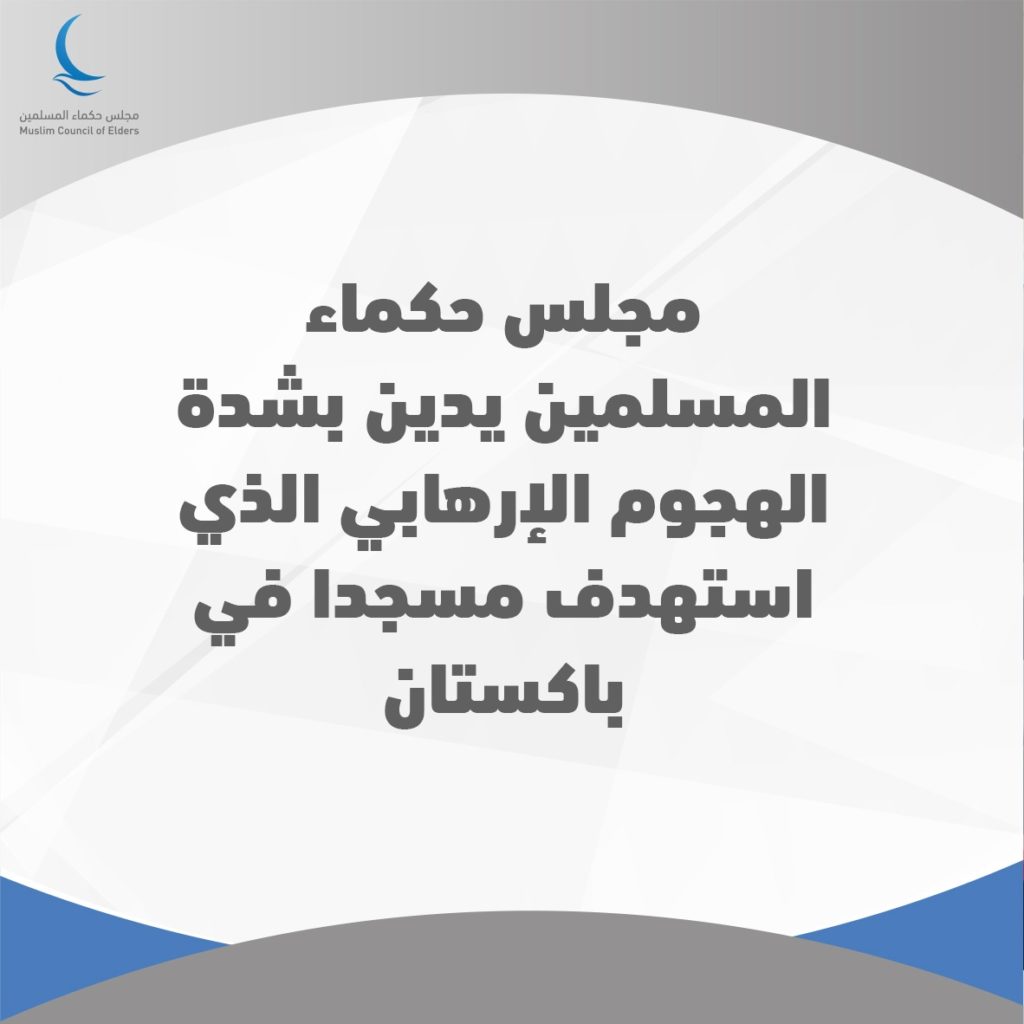 يُدين مجلس حكماء المسلمين برئاسة فضيلة الإمام الأكبر أ. د. أحمد الطيب، شيخ الأزهر الشريف، رئيس مجلس حكماء المسلمين، بشدة التفجير الإرهابي الذي استهدف مسجدًا في مدينة بيشاور شمال غربي باكستان وأسفر عن سقوط عدد من القتلى والجرحى.