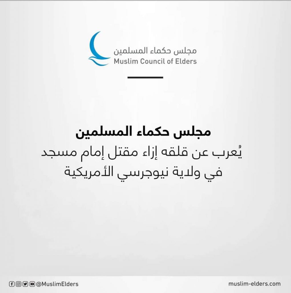 يُعرب مجلس حكماء المسلمين برئاسة فضيلة الإمام أ.د أحمد الطيب، شيخ الأزهر الشريف، عن قلقه الشديد إزاء مقتل الإمام حسين شريف، إمام مسجد في مدينة نيوارك بولاية نيوجرسي الأمريكية، الذي قُتل جرَّاء حادث إطلاق نار استهدفه من قِبل مجهول في موقف المسجد بعد أدائه صلاة الفجر الخميس الماضي.