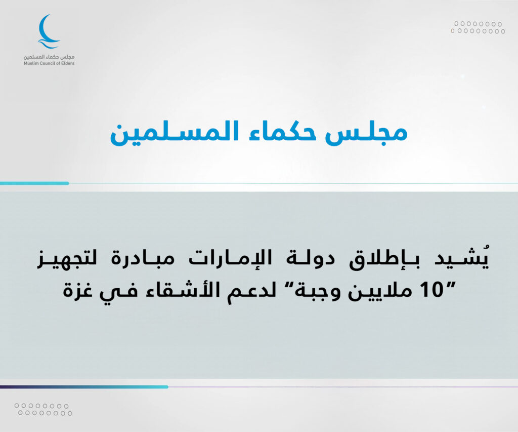 مجلس حكماء المسلمين يُشيد بإطلاق دولة الإمارات مبادرة لتجهيز “10 ملايين وجبة” لدعم الأشقاء في غزة