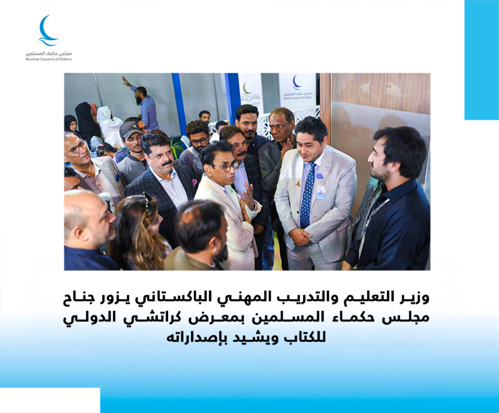 وزير التعليم والتدريب المهني الباكستاني يزور جناح مجلس حكماء المسلمين بمعرض كراتشي الدولي للكتاب ويشيد بإصداراته