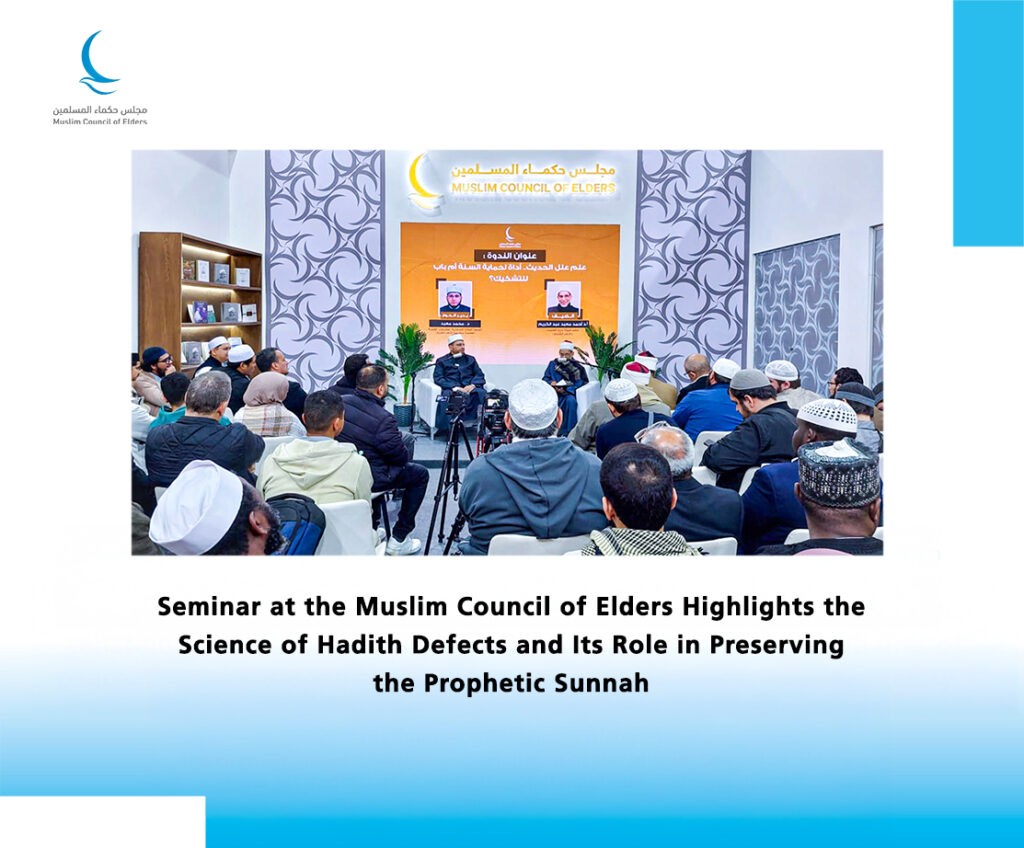 The pavilion of the Muslim Council of Elders at the 57th Cairo International Book Fair hosted a large‑scale seminar titled “In the Sanctuary of Imam Al‑Tayeb: A Reading of the Works Dedicated to His Eminence the Grand Imam.” The seminar was attended by the eminent scholar Sheikh Hassan Al‑Shafie, member of the Council of Senior Scholars at Al‑Azhar and Member of the Muslim Council of Elders, and Professor Dr. Mohamed Al‑Duwaini, Deputy of Al‑Azhar.