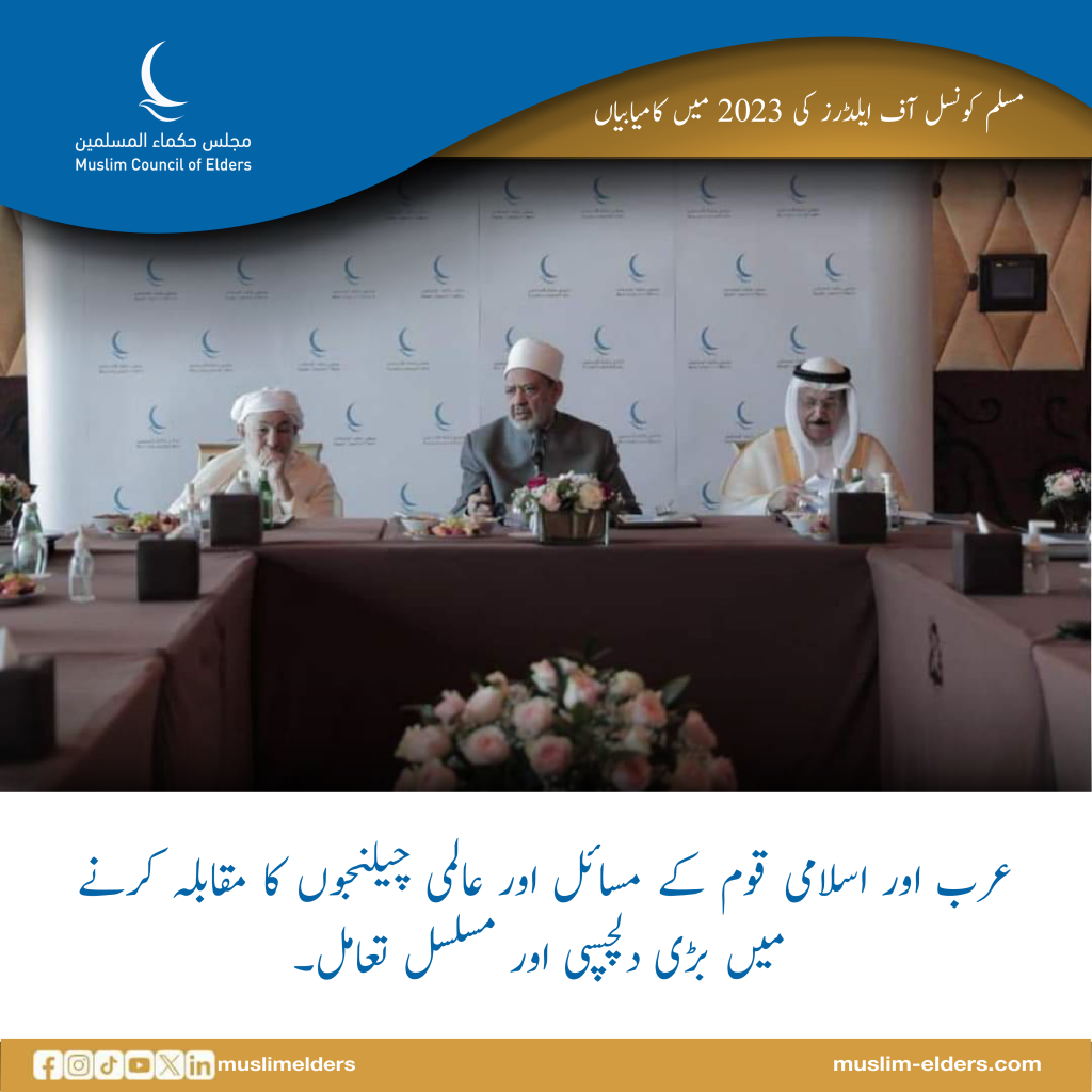 سال 2023 میں مسلم کونسل آف ایلڈرز کی جانب سے امام اکبر پروفیسر ڈاکٹر احمد الطیب، شیخ الازہر الشریف، کی سربراہی میں بہت سے بین الاقوامی فورمز، اور کانفرنسوں میں امن و انصاف کے کلچر کو عام کرنے، مکالمے اور پرامن بقائے باہمی کی اقدار کو برقرار رکھنے اور اسلام کی رواداری کی تعلیمات کو […]