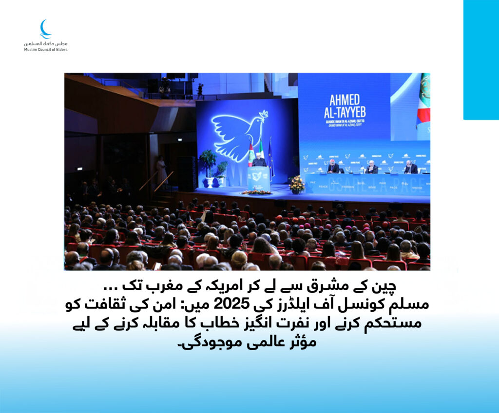 چین کے مشرق سے لے کر امریکہ کے مغرب تک … مسلم کونسل آف ایلڈرز کی 2025 میں: امن کی ثقافت کو مستحکم کرنے اور نفرت انگیز خطاب کا مقابلہ کرنے کے لیے مؤثر عالمی موجودگی۔