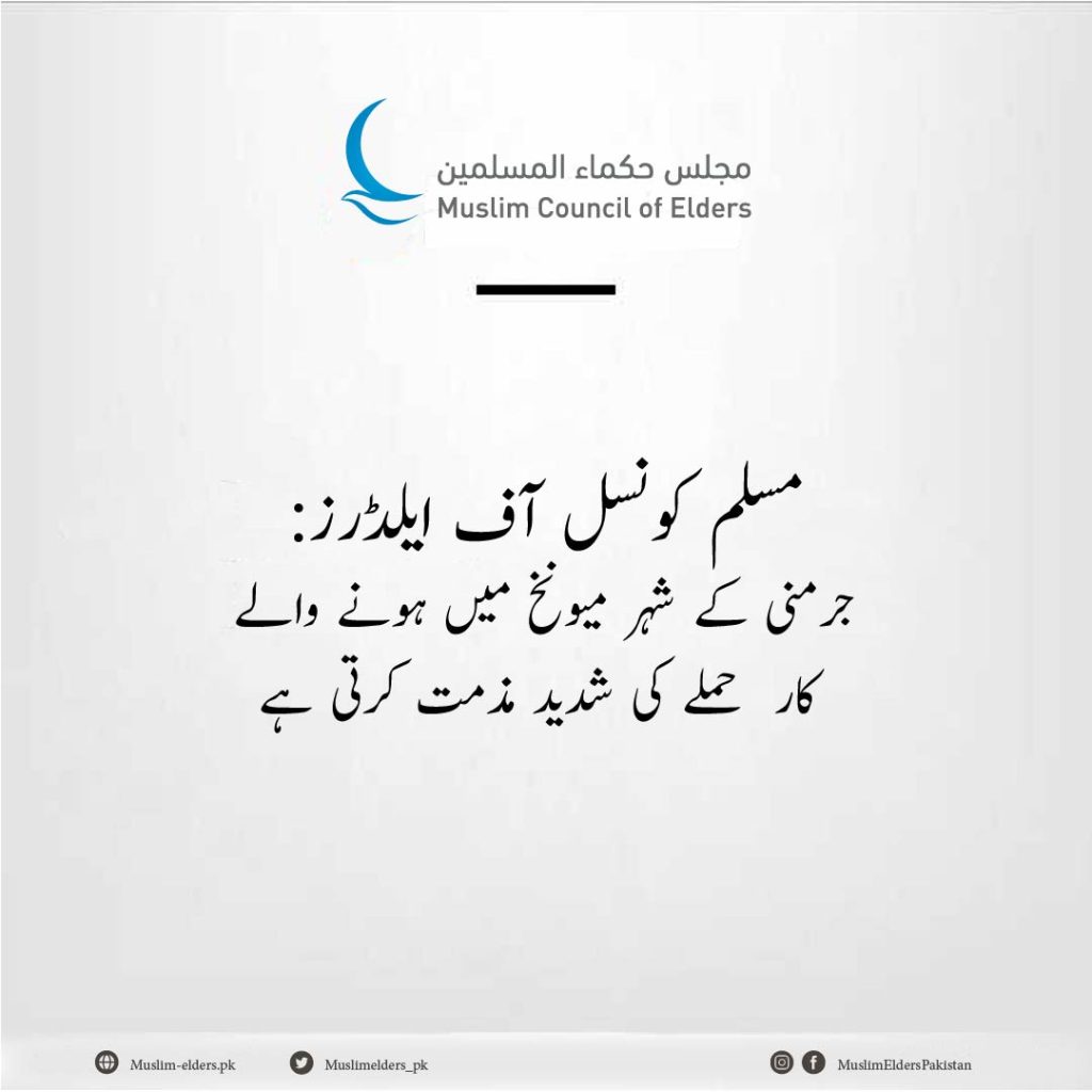 مسلم کونسل آف ایلڈرز جرمنی کے شہر میونخ میں ہونے والے کار حملے کی شدید مذمت کرتی ہے