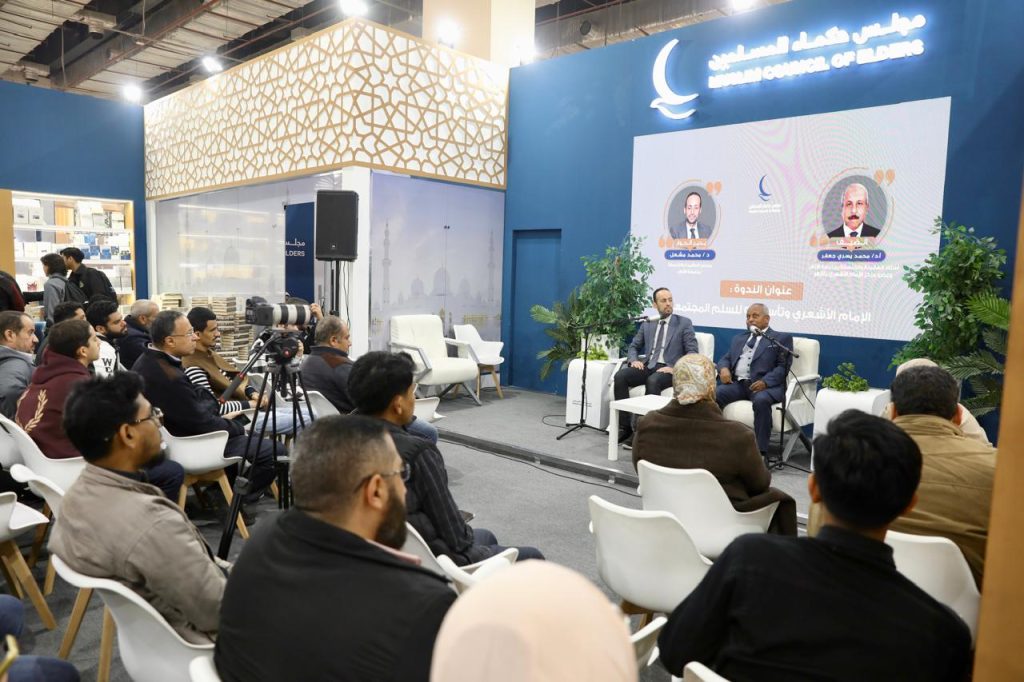 "علامہ احمد فہمی ابو سنہ کے تحقیقی مقالات اور تحریریں” قاہرہ بین الاقوامی کتاب میلے میں مسلم کونسل آف ایلڈرز کے پویلین میں "الحکماء پبلشنگ” کی تازہ ترین اشاعتوں میں سے ایک