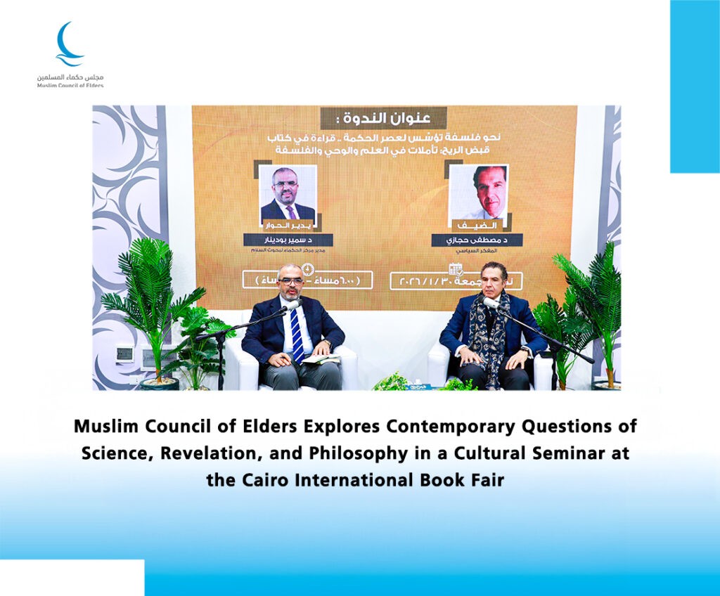 The Muslim Council of Elders is participating with a dedicated pavilion at the 57th Cairo International Book Fair, running from 21 January to 3 February 2026. The pavilion features a wide range of the Council’s publications, in addition to organizing numerous seminars, activities, and events focused on promoting values of goodness, love, peace, and coexistence among all people.