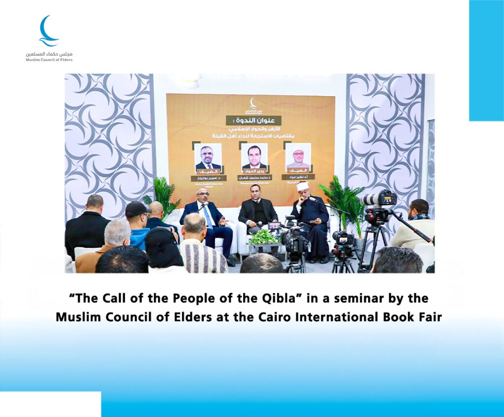 The pavilion of the Muslim Council of Elders held its twelfth cultural seminar at the 57th edition of the Cairo International Book Fair, under the title: “Al Azhar and Islamic Dialogue: Requirements for Responding to the Call of the People of the Qibla.”