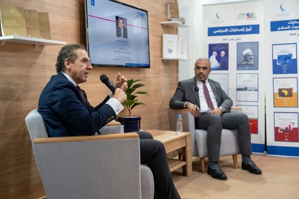 The Muslim Council of Elders concluded its participation in the 30th Rabat International Book Fair with a cultural seminar titled “Between Two Humanities: A Dream and Wisdom Between Decline and Emergence.” The session was moderated by Dr. Samir Boudinar, Director of Al Hokama Center for Peace Research, and presented by renowned Egyptian academic and thinker Dr. Mustafa Hijazi.